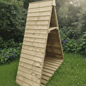 - Pressure treated triangular log store. Price includes erection locally when purchased with firewood.