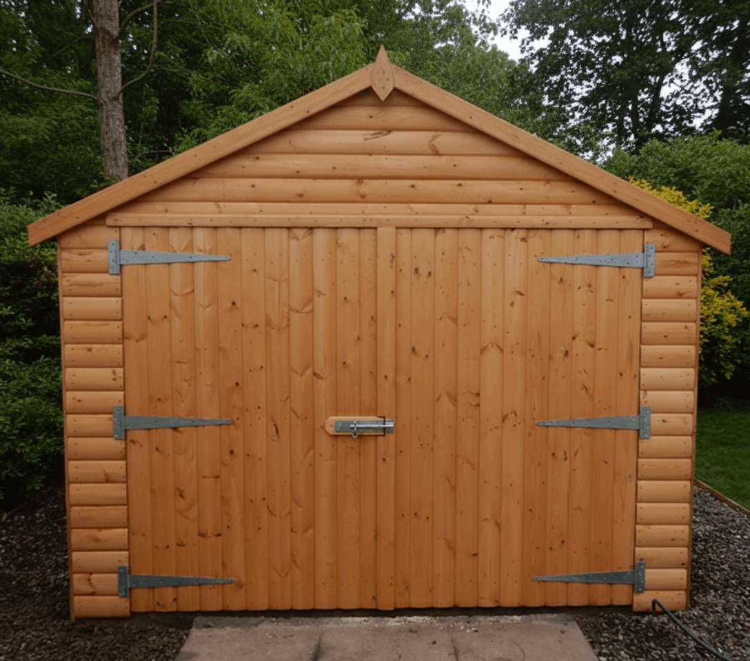 - Our heavy duty garages are constructed with the best quality materials and will give you years of use. standard sizes available or made to suite your size please see bespoke sheds for information. All of our sheds come with installation included in the price on your level base.